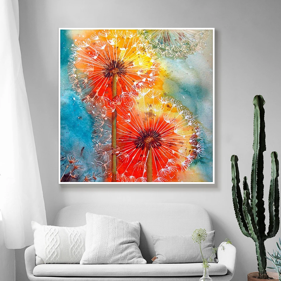 Алмазная картина сделай сам с одуванчиком, алмазная вышивка, мозаика с цветами, полные круглые картины стразы, домашний декор, ручная работа, художественные подарки