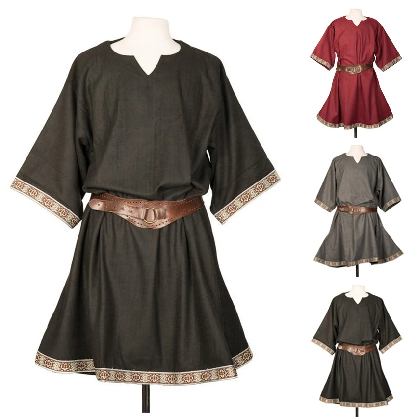 Костюм пирата викинга для мужчин, однотонная повседневная одежда для косплея пиратов с поясом, винтажная одежда для размера плюс эпохи Возрождения, средневековая одежда