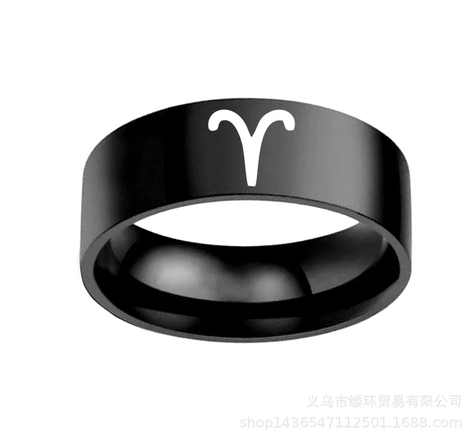 12 созвездия Зодиака Знаки кольца на палец для женщин девушек черное серебряное кольцо из нержавеющей стали Anel Anillos Jewelry Размер 6-13