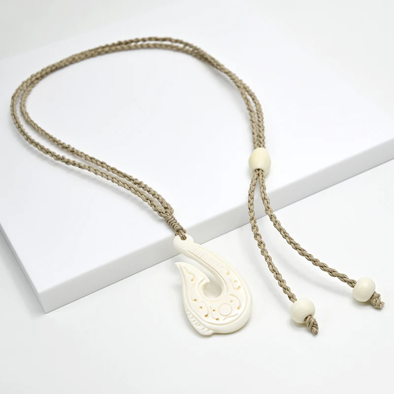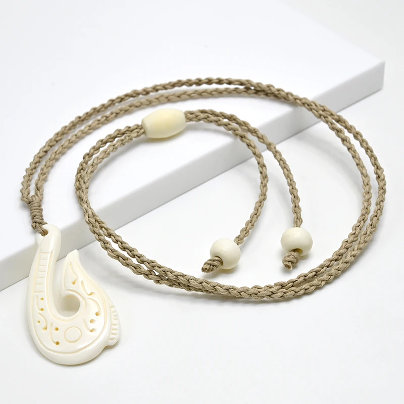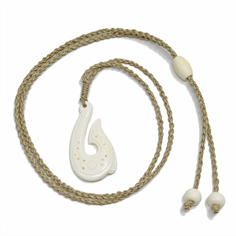 Мужские ювелирные изделия ручной работы NGX041, подвеска для племени Новой Зеландии, якорская кость, крючок для рыбы, женское плетеное ожерелье из пеньковой веревки для серфинга