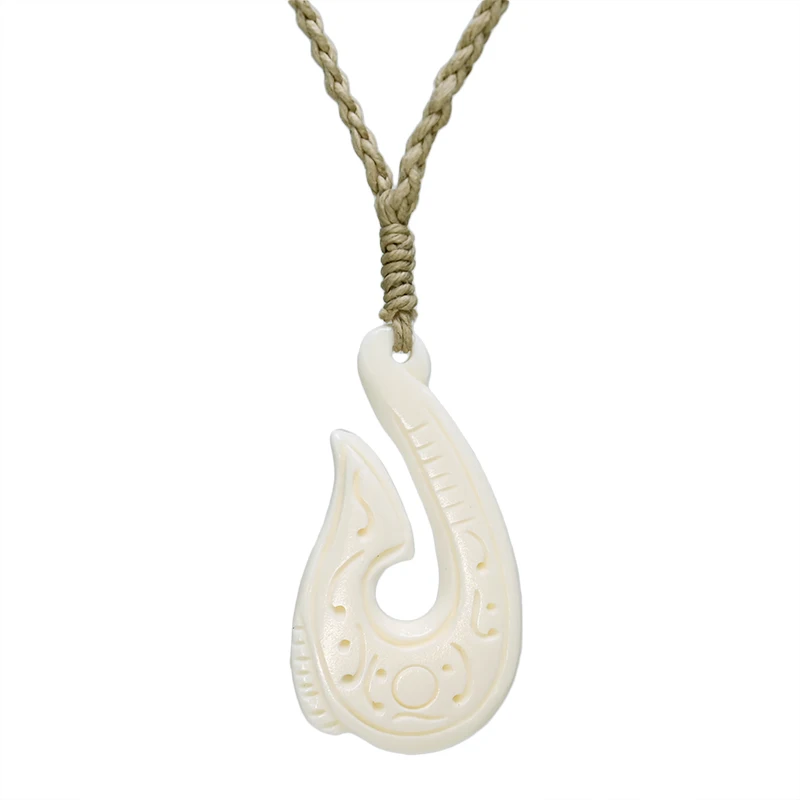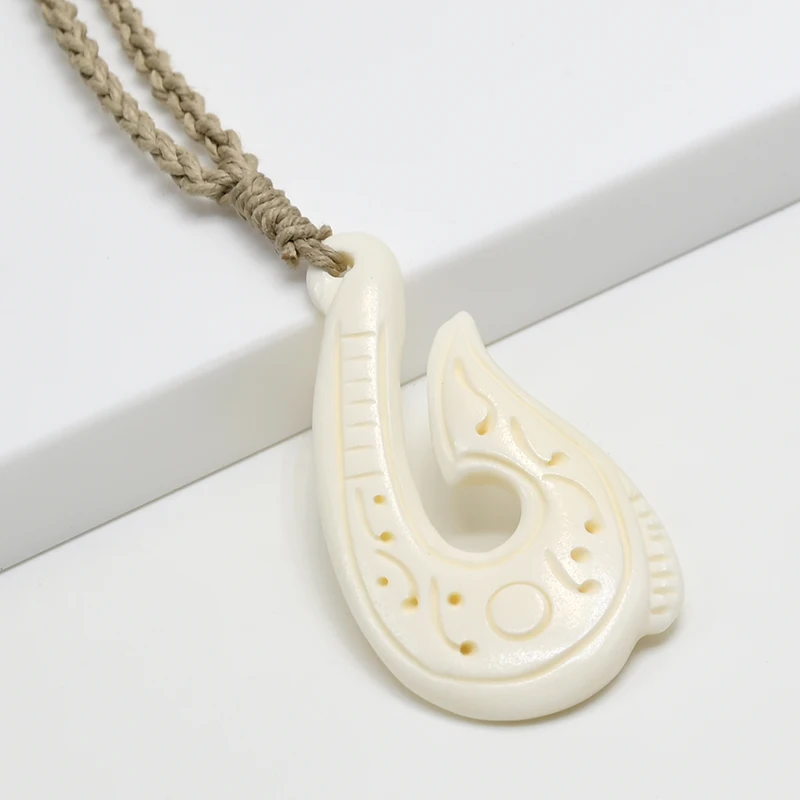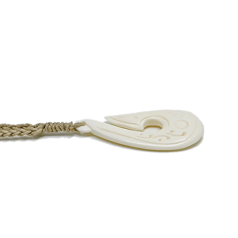 Этот кулон сделан из кости ручной работы. Кость была вырезана на ювелирные изделия в течение очень долгого времени, так как она отражает силу диких животных.Этот кулон поставляется на регулируемой пенькеВеревка.Пеньковая тканьПрочный и вы можете носить его во время плавания или принятия душа. Дизайн крючка представляет собой соединение семьи, символизирует удачу, хорошее здоровье и долгую жизнь. Это считается удачным очарованием путешественников, лодочников, рыбаков и серферов.