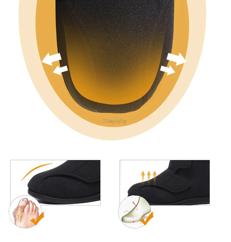 Тканевая обувь с высоким верхом может быть расширена до и после регулируемой плоской обуви Диабетическая деформация большого пальца ноги