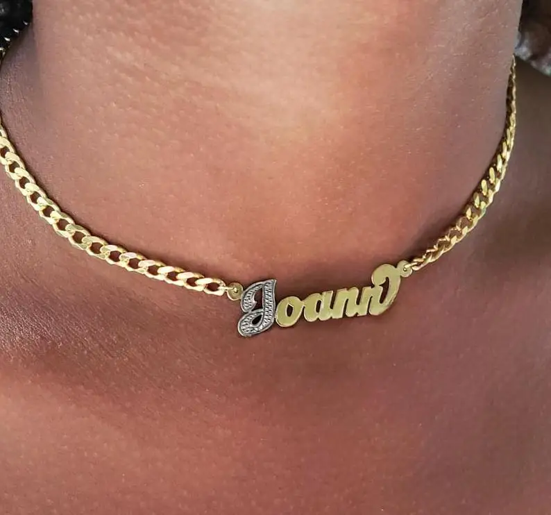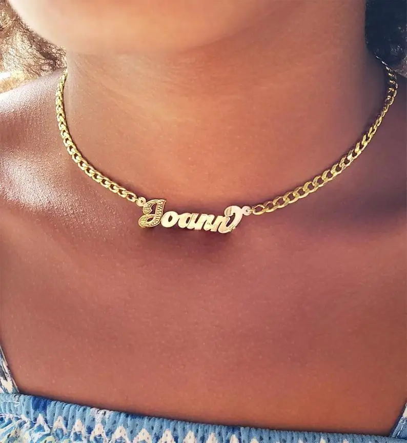 Ожерелье с именем на заказ, золотистый чокер из нержавеющей стали с...