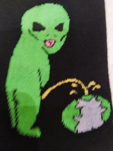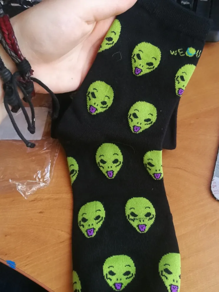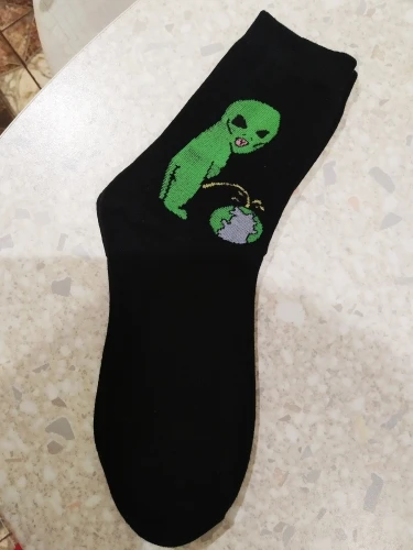 Сыну-подростку носки понравились. Заказывали на 43 российский размер, широкую ступню. Подошли замечательно! не понимаю, почему в некоторых отзывах фигурирует 37-38 размер?! Специально запихала в носок сланец 40-го размера: сами смотрите, какого размера носок на фото, учтите при этом, что он не натянут, есть ещё запас по длине! Голяшка носка тоже хорошая: не тугая, эластичная, передавливать лодыжку не станет. Рисунок писающего человечка по цвету не люминесцентный, но и не тусклый, фото передаёт его верно. Доставка в Вологодскую область чуть больше двух месяцев (заказ оформлен 4 февраля). Купили за 99₽. К покупке рекомендую.