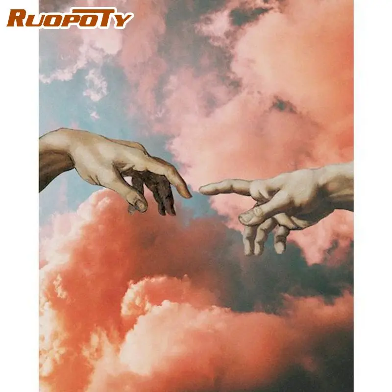 Краска для рисования по номерам RUOPOTY Hands In Sky, 40x50 см, акриловая краска в рамке, домашний декор для гостиной, рисование на холсте