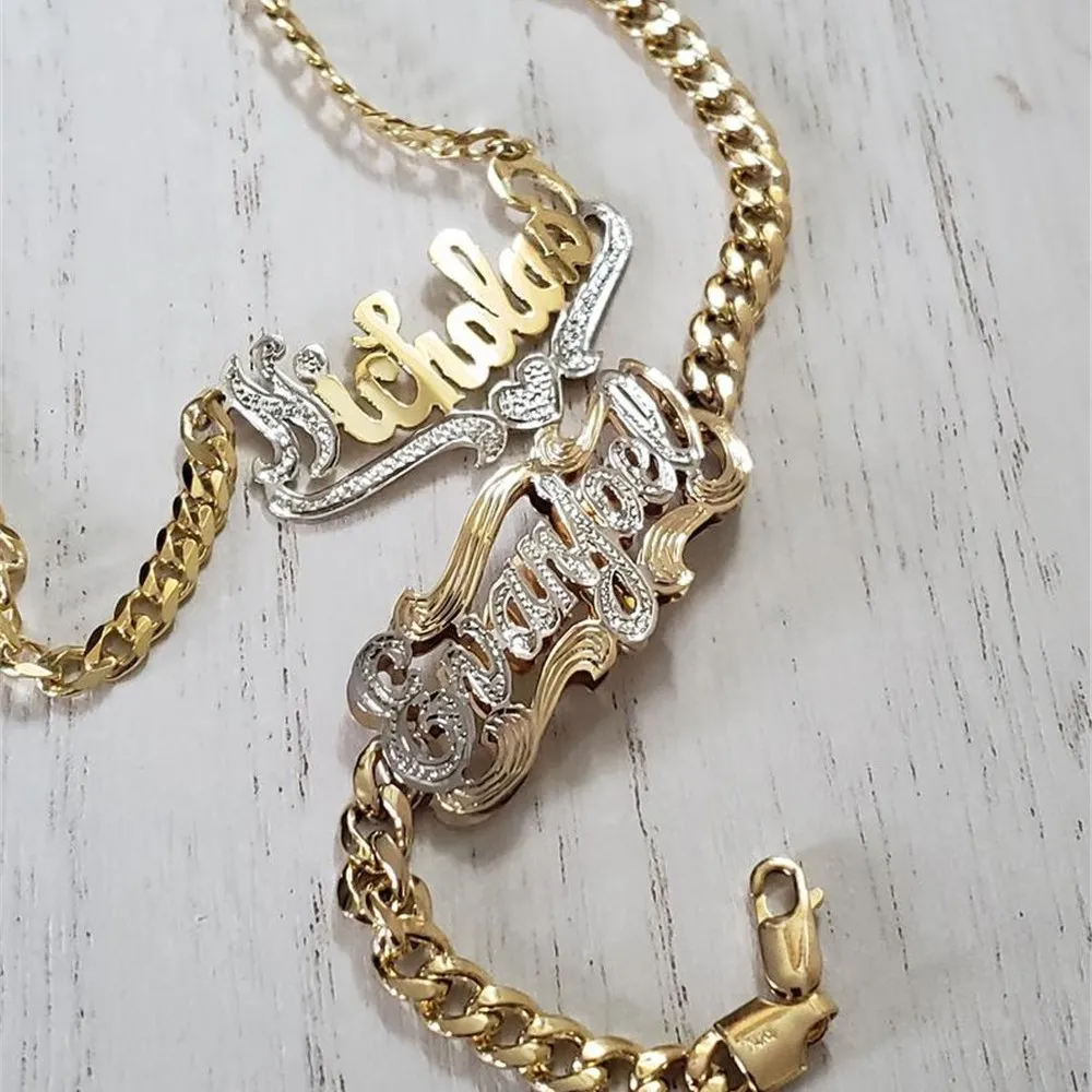Именное ожерелье на заказ, двухслойная позолоченная именная табличк...