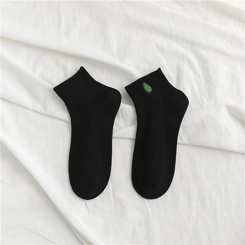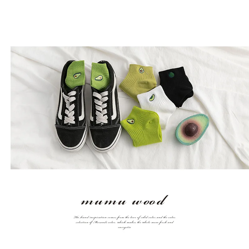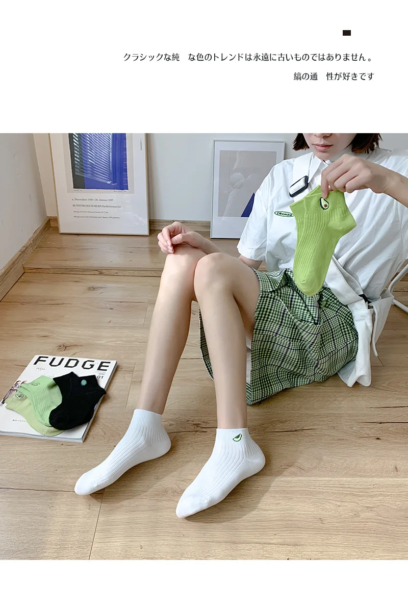 Женские однотонные носки с вышивкой авокадо, повседневные хлопковые короткие носки Джокера для девушек, лаконичные Дышащие носки в студенческом стиле