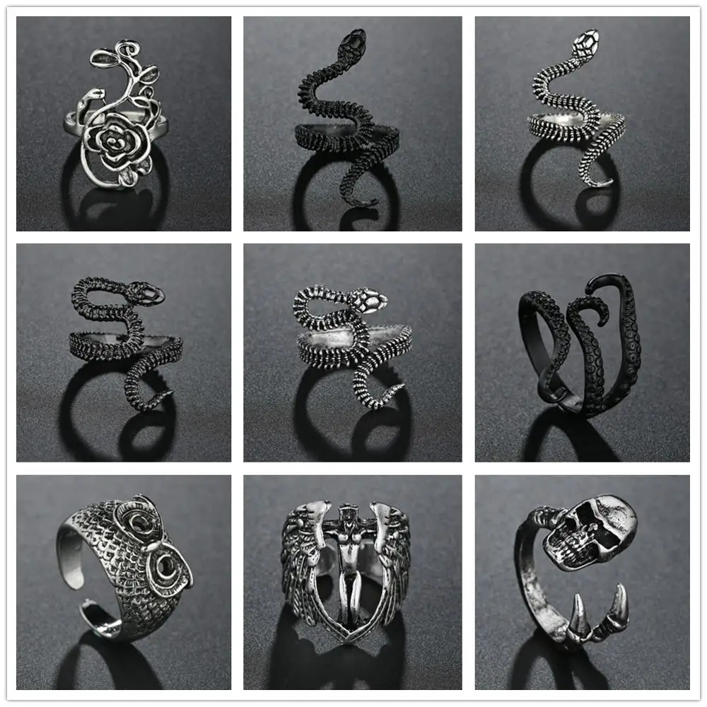 1. Наименование:В винтажном стиле, в готическом стиле, змея кольцо для мужчин Dragon крылья Сова Цветок Осьминог для мужчин кольцо в стиле панк; Бижутерия Мода дурной животных Anel