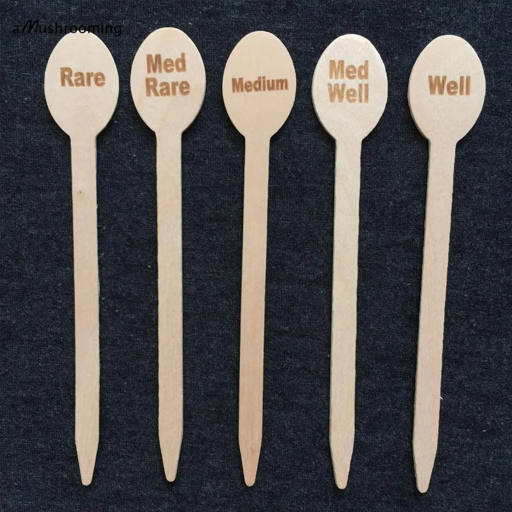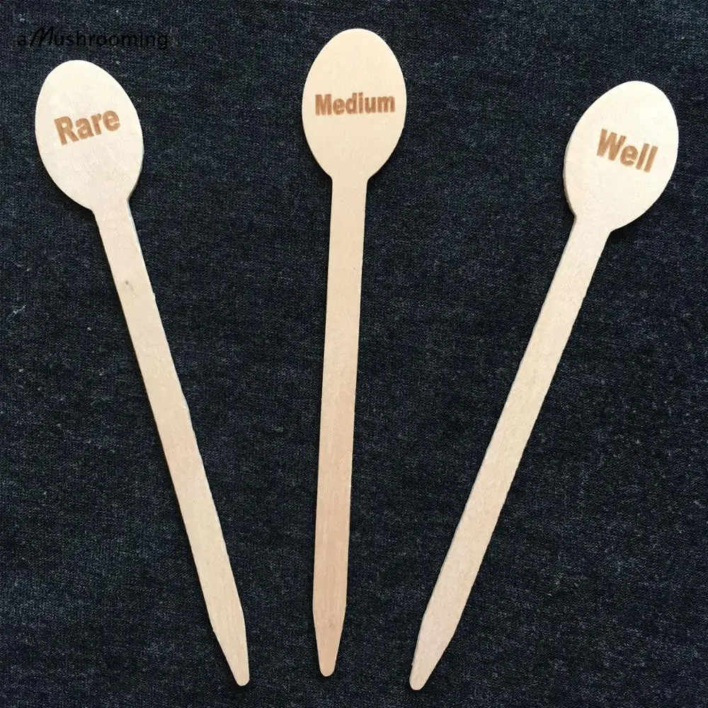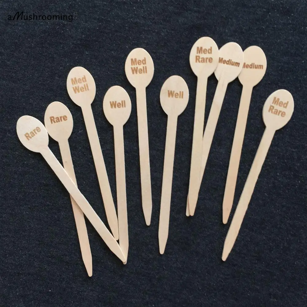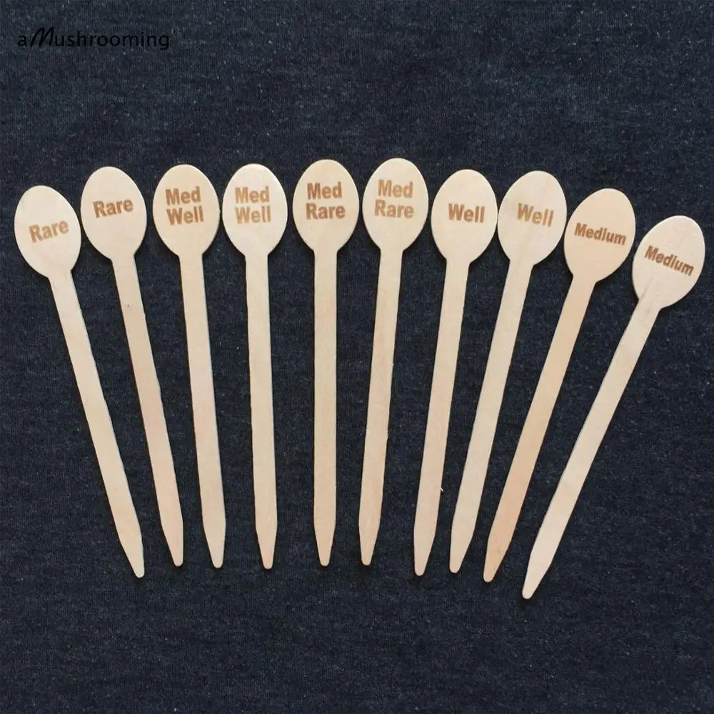 Маркеры для стейка из натурального дерева, 100 шт., палочки на заказ для гамбургеров, домашний Стейк-домик, биоразлагаемые, средний редкийхорошо приготовленный
