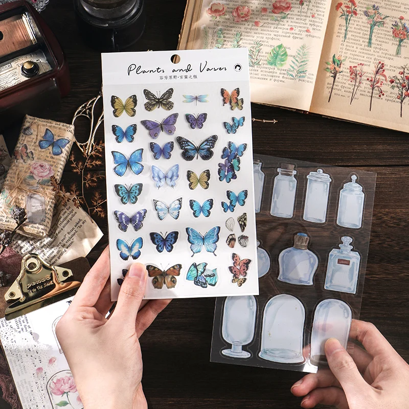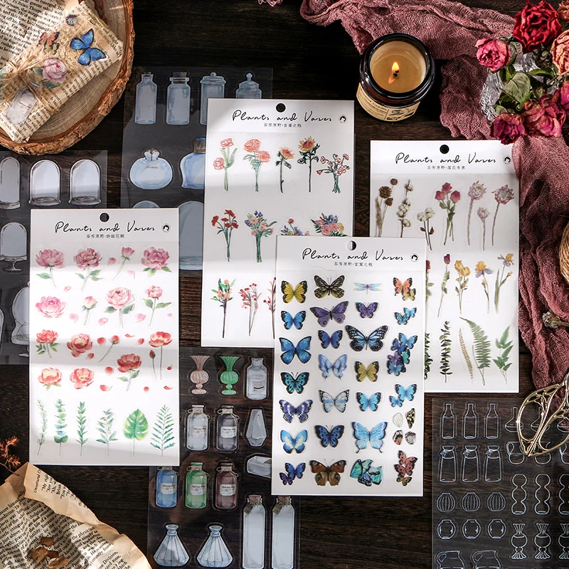 Вазы растения стикеры декоративные наклейки для канцелярских принадлежностей прикрепить ярлык "сделай сам" дневник альбом-ежедневник альбом журнал украшения