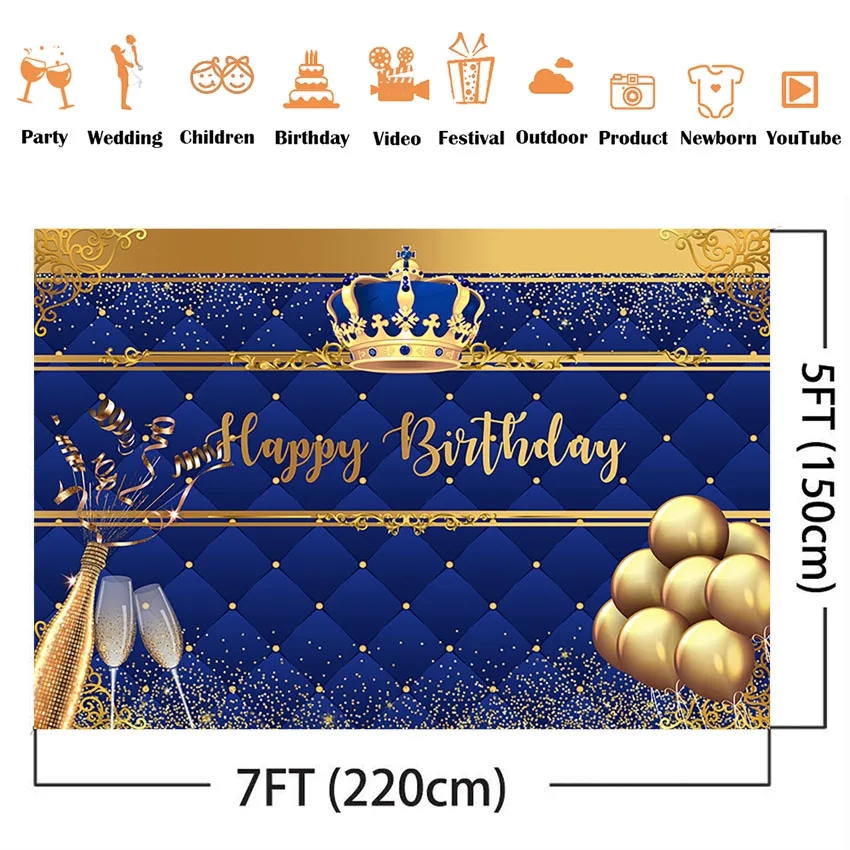 Принц Днем Рождения фон Золотая Корона черная curtrain фон для фото...