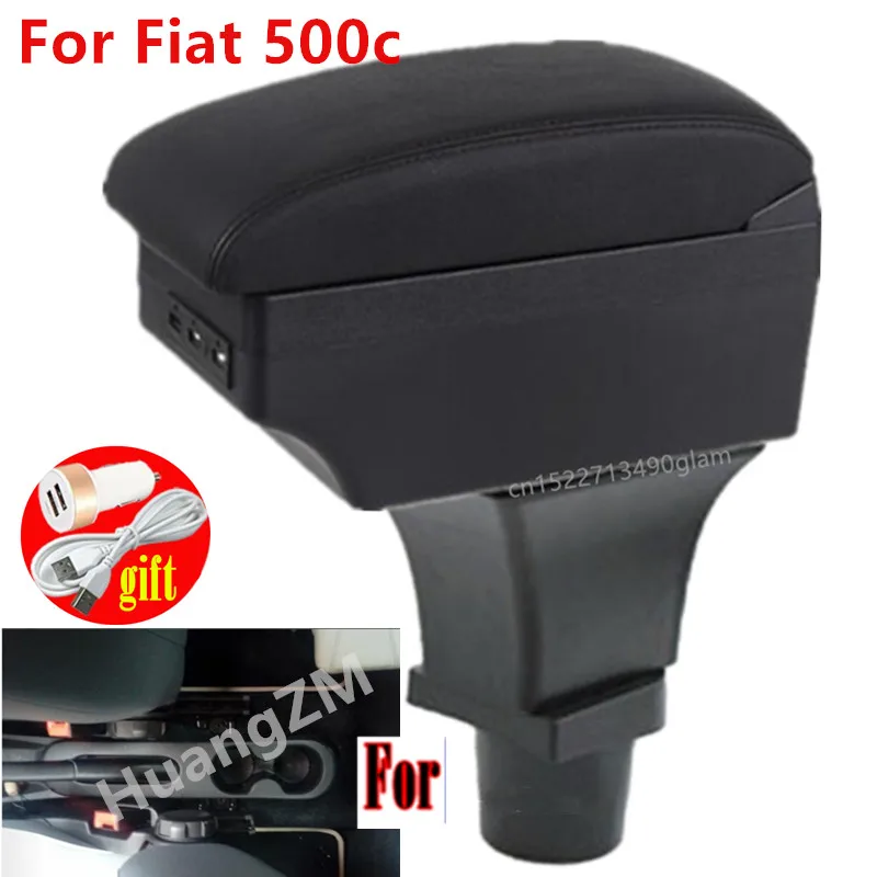 Подлокотник для Fiat 500c, центральный ящик для хранения, аксессуары для автомобиля, интерьер с USB, светодиод