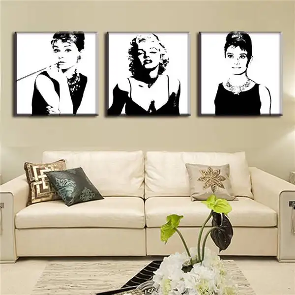 3 шт. винтажный постер портрет картина маслом на холсте Настенная картина Мэрилин Монро и Одри Хепбёрн Холст принты картины