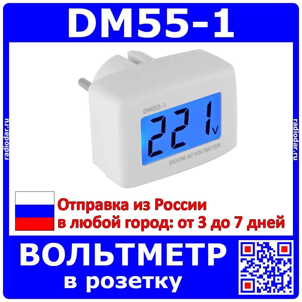 DM55-1 - цифровой вольтметр в розетку 110*300В, 2%, 62*57*42мм
