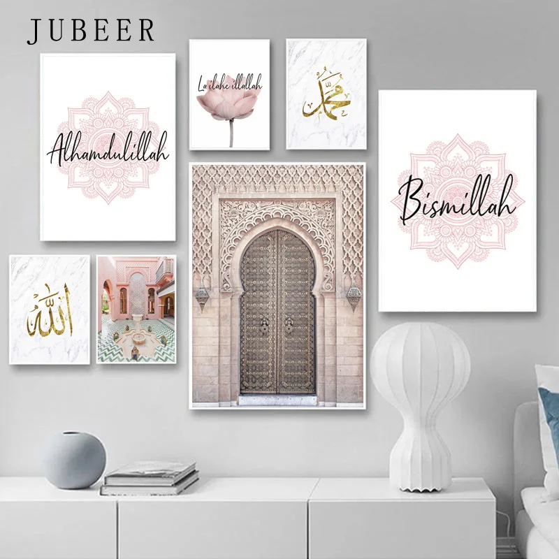 Постер на холсте с изображением розовых цветов старые ворота, ислам...