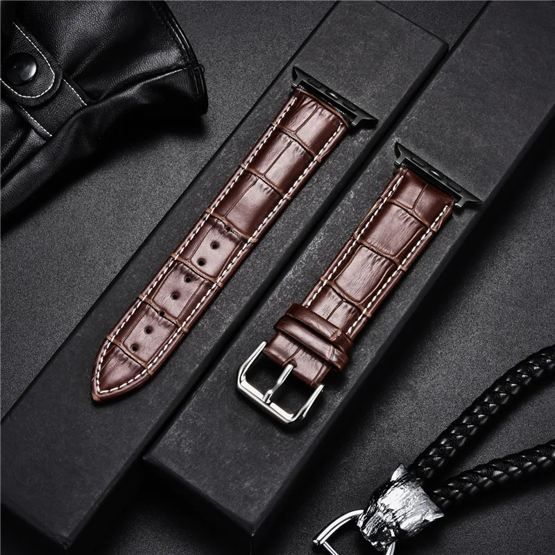 Классический кожаный ремешок для Apple Watch Series 6, 5, 4, 3, деловой кожаный браслет 44 мм, 42 мм, 40 мм, 38 мм, ремешки для iwatch