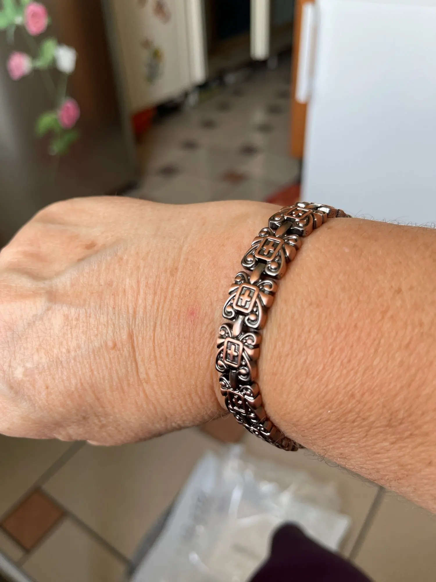 Браслет просто отличный.наверно правда что медный, тяжеловатый а не пустотелый. Сразу одела на руку и он прижился на ней. Продавца рекомендую. Отправил очень быстро без проволочек5*Процветания и успехов в торговле