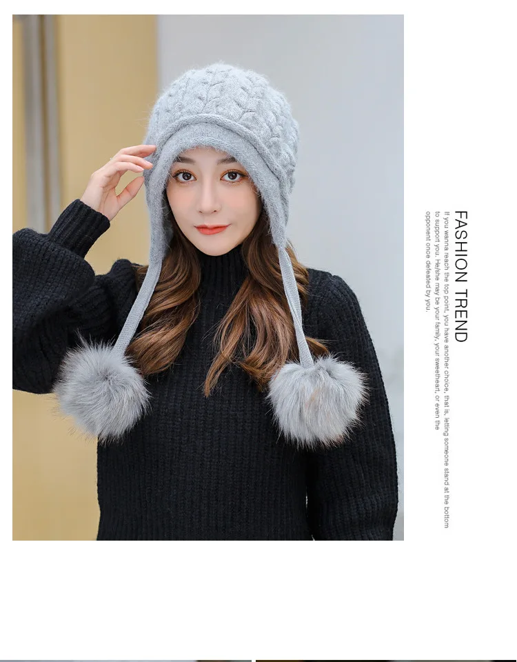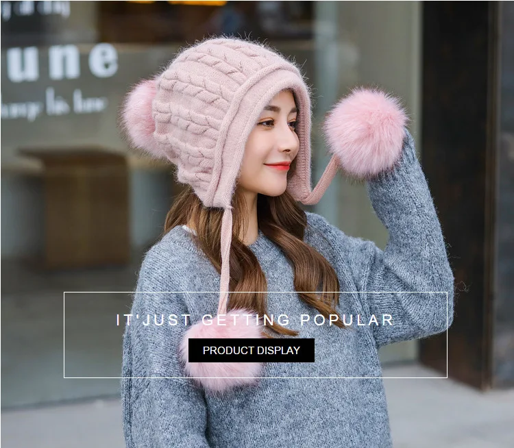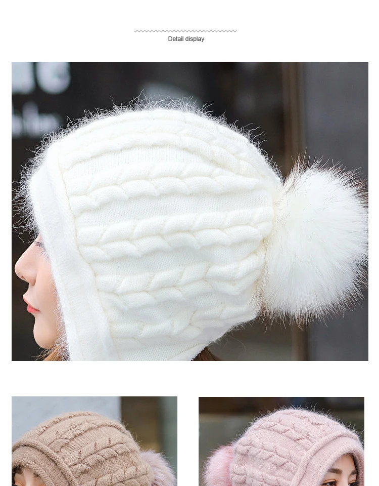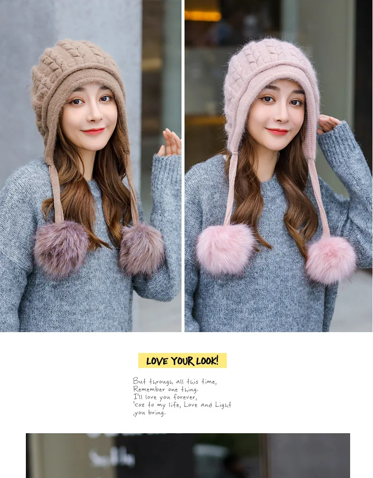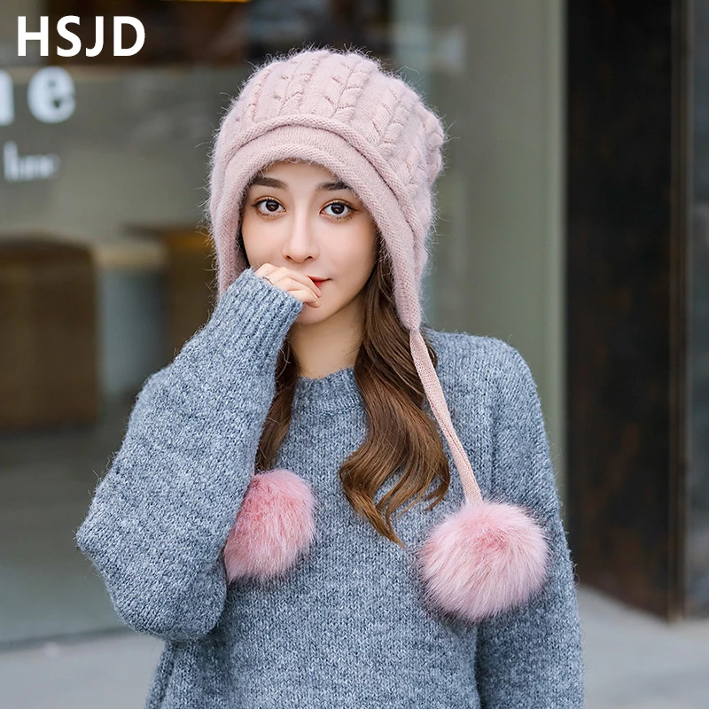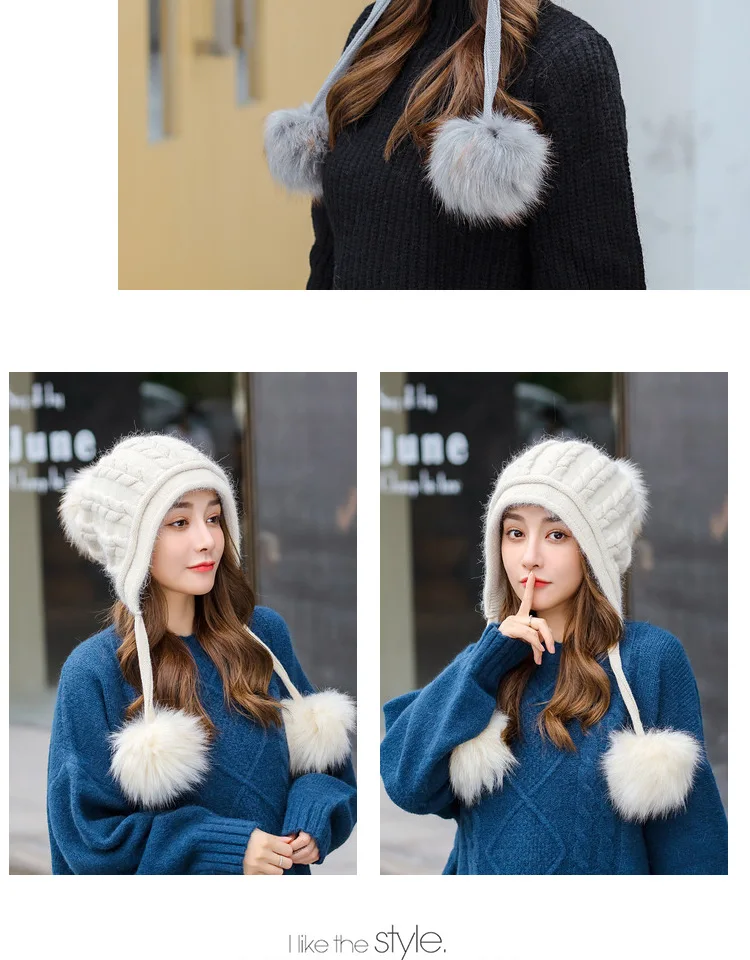 Женские зимние шапки с 3 меховыми помпонами, вязаные шапки с цветами, шапки ручной работы, вязаные крючком, теплые шапки, чепчик для девочки
