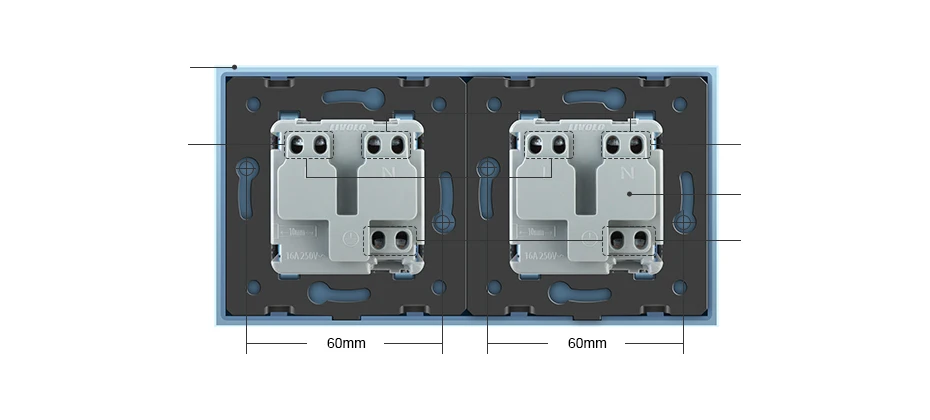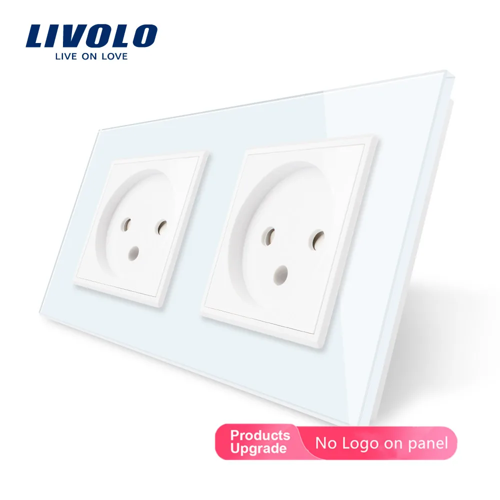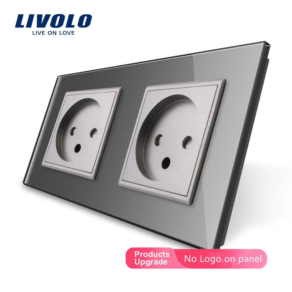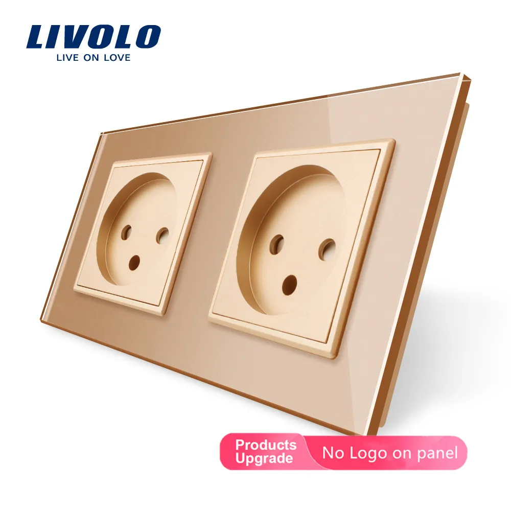 LivoloСтандартный двойной Израиль Мощность гнездо, Стекло Панель, переменный ток, 100 250V 16A стены Мощность гнездо, VL-C7C2IL-11121315, Панель
