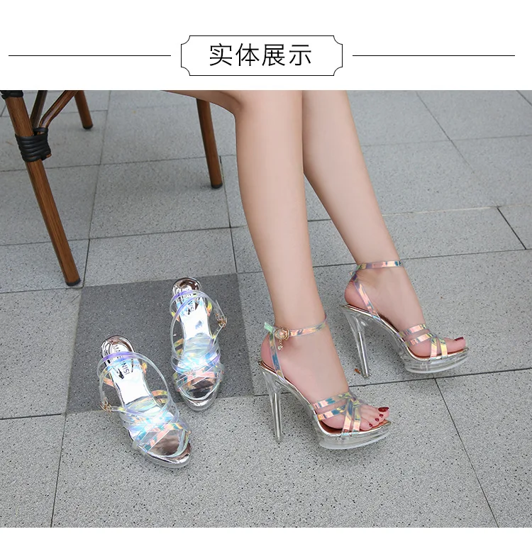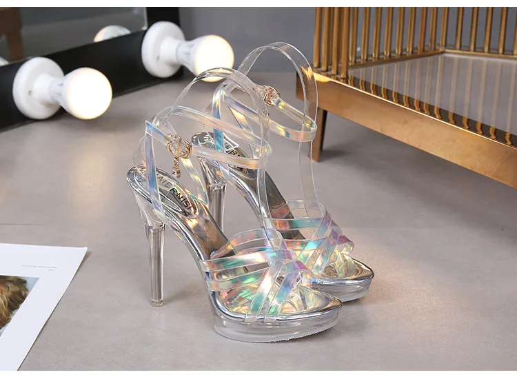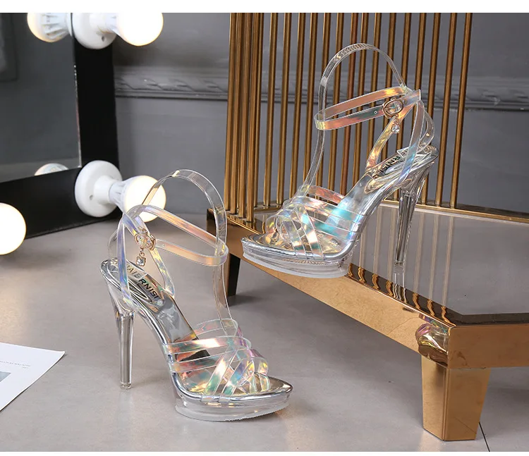 Туфли-лодочки женские прозрачные на резиновой подошве, вечерние сандалии с меняющим цвет стеклянными полосками, на высоком каблуке, для летнего сезона