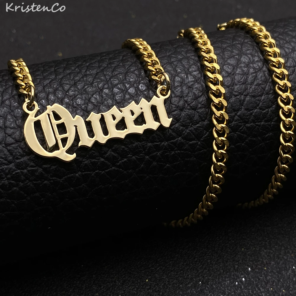 Ожерелье KristenCo с именем на заказ для женщин, старинное английское ожерелье из нержавеющей стали, Золотая цепь, ожерелье с табличкой, ювелирные изделия для подарка