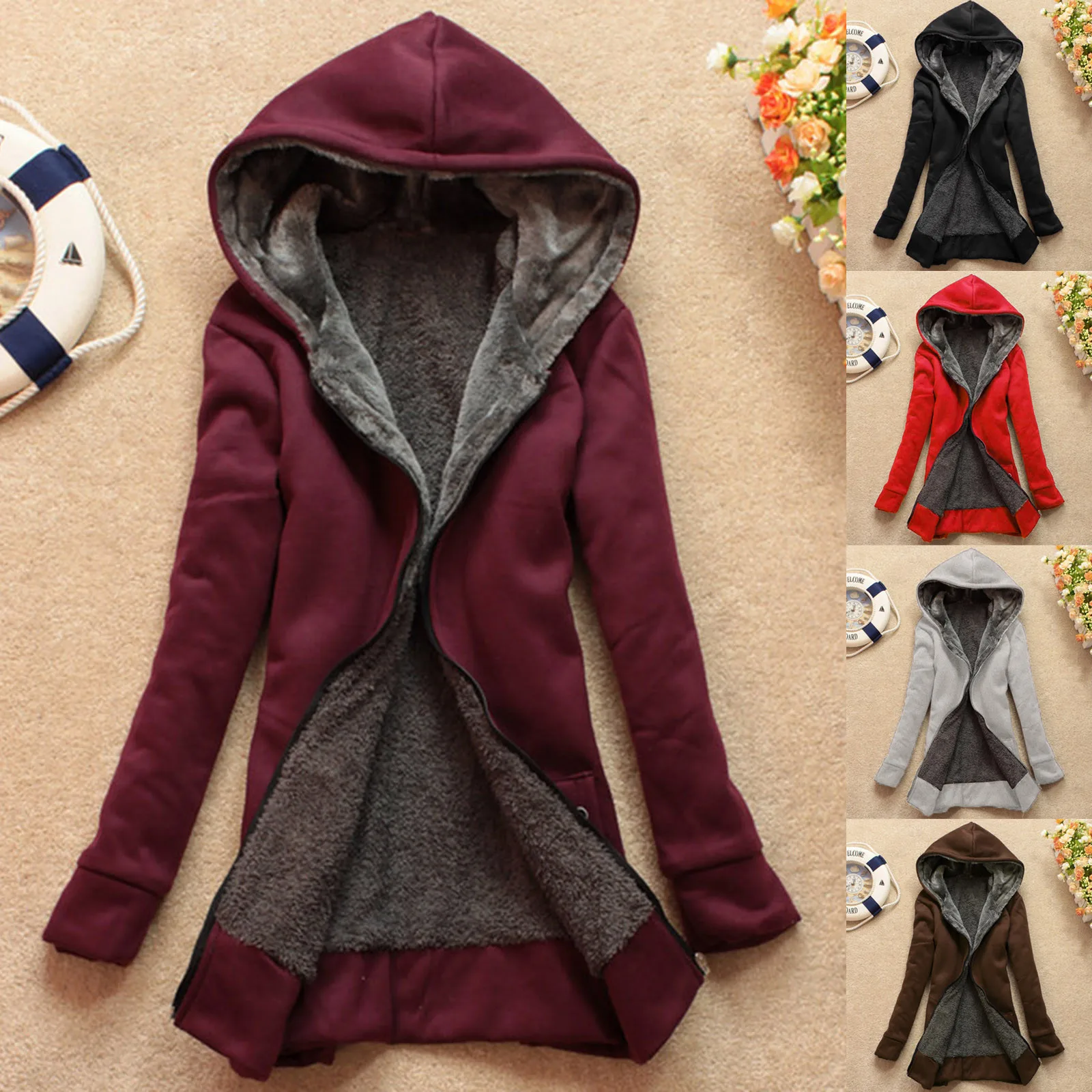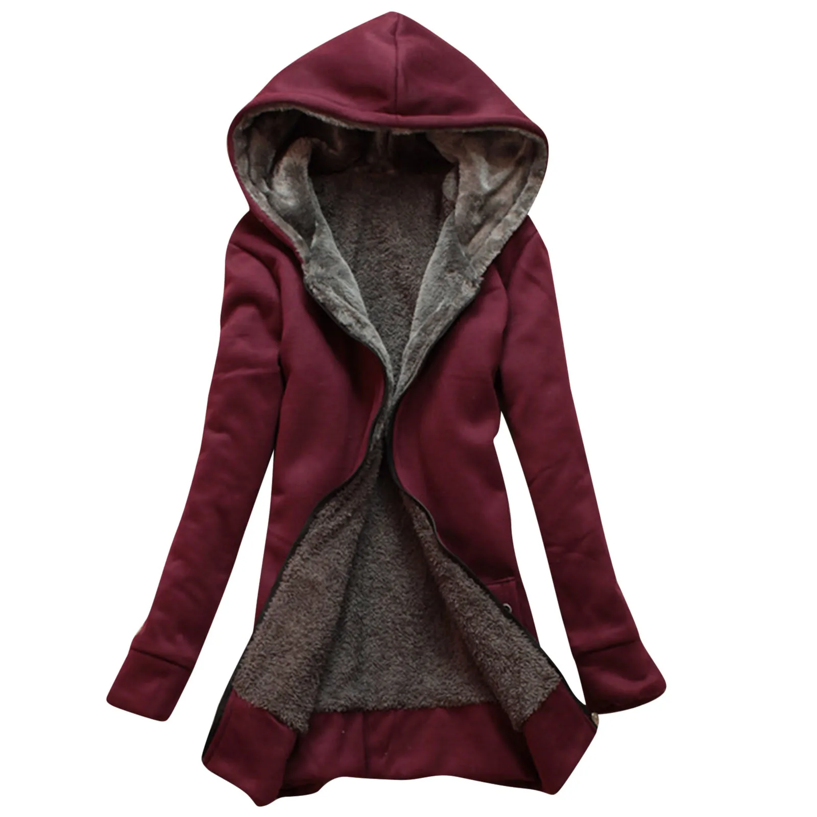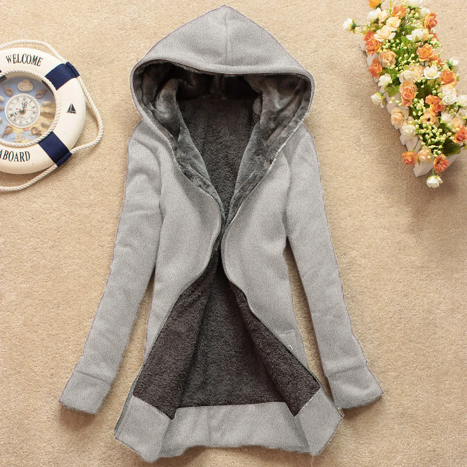 Женская куртка с капюшоном, Повседневная зимняя теплая толстовка на молнии с длинным рукавом и капюшоном, Толстая теплая куртка, пальто для женщин, #40