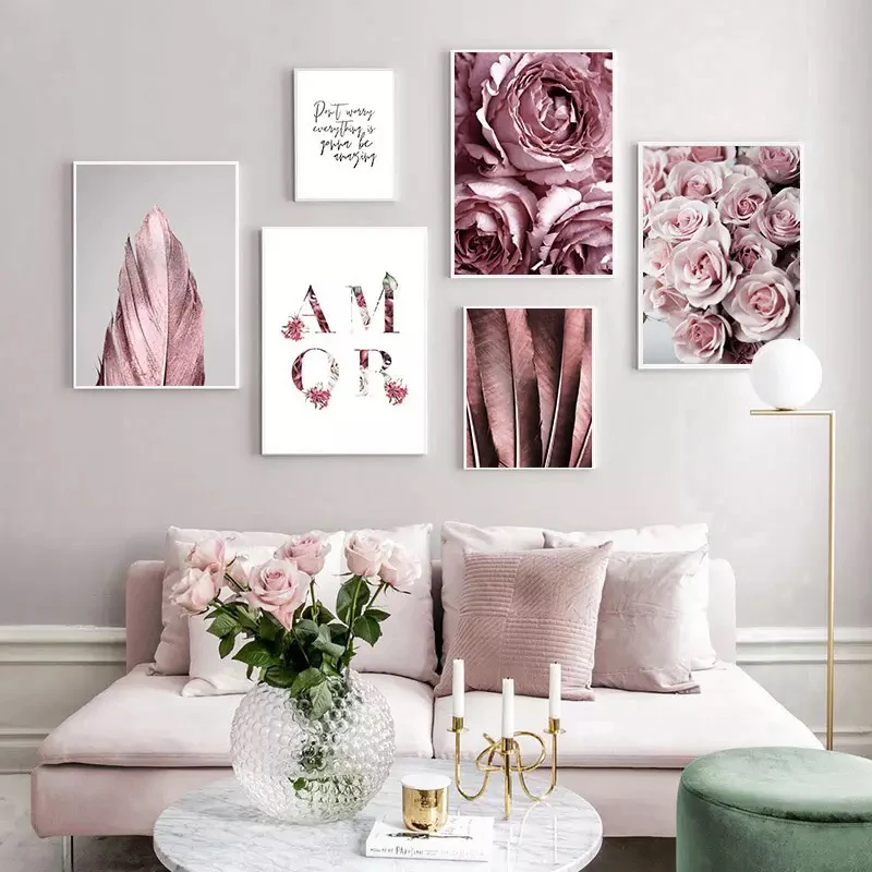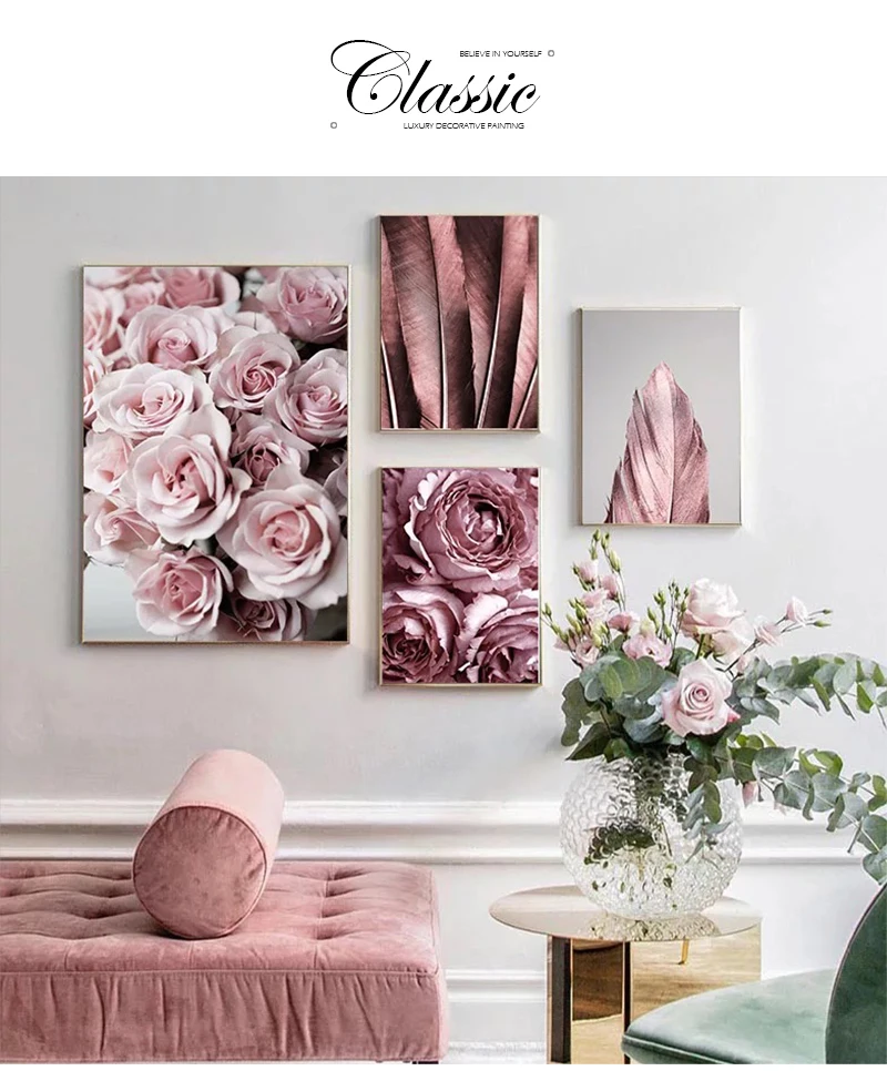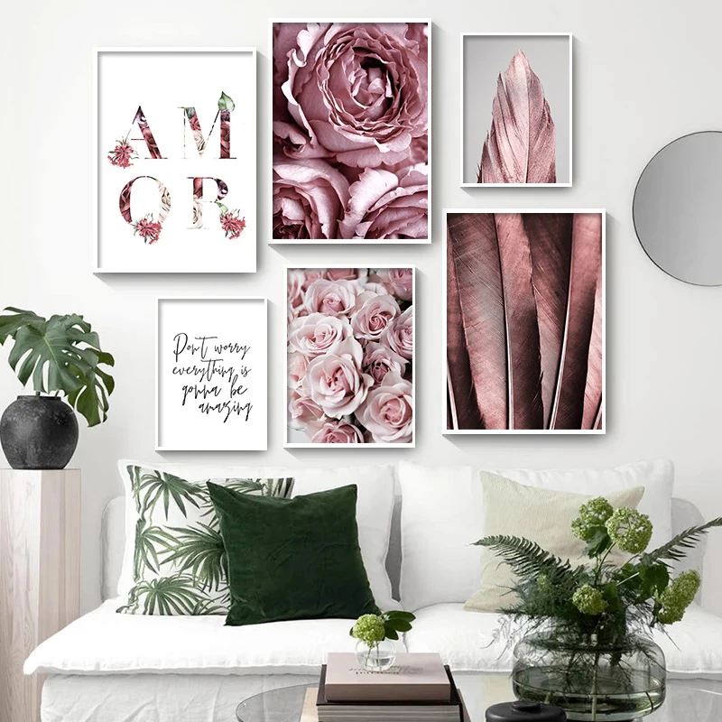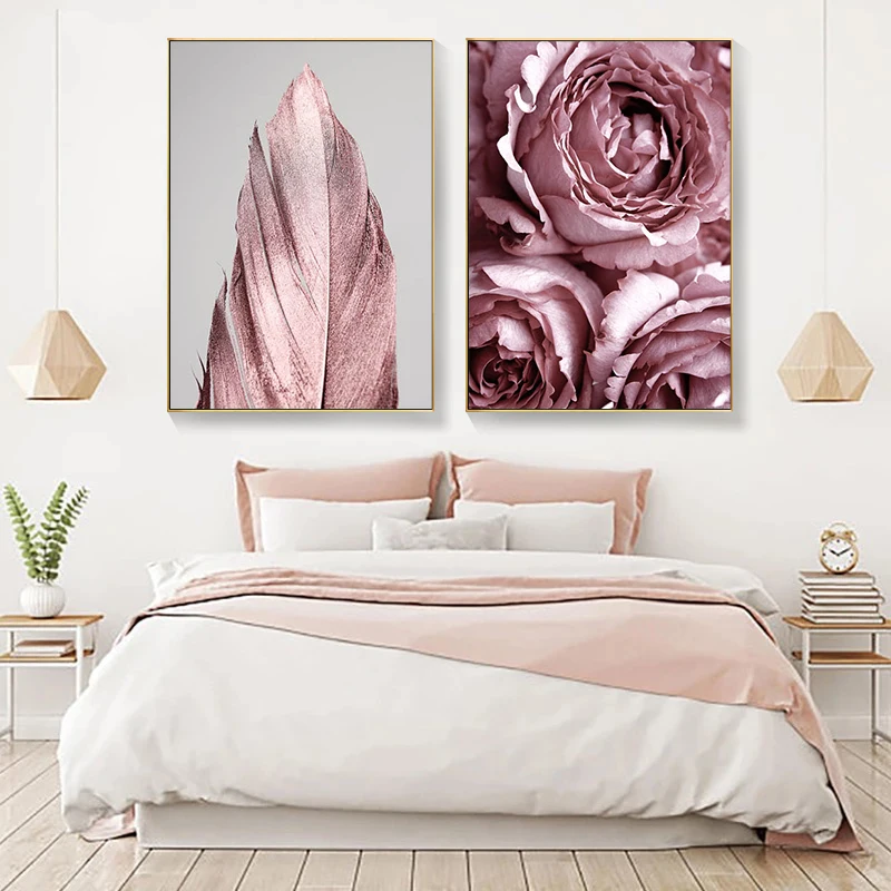 Скандинавский модный постер, Настенная картина в скандинавском стиле с изображением розовых роз и перьев, Современная Картина на холсте для гостиной icon star icon star icon star icon star icon star