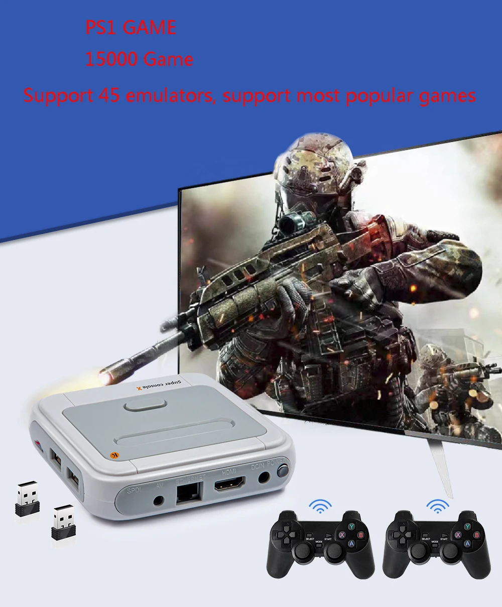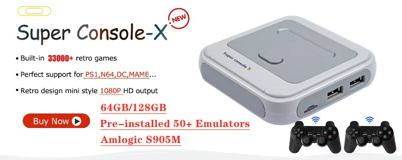 Super console X уже содержит более 34000-40000 полных игр из 50 + эмуляторов: от Atari до PSP. В комплекте с каждой классической ретро-игрой, которую вы можете себе представить, наша ретро-игровая консоль идеально эмулирует консоли PSP/DC/N64/NDS, действительно перенесет вас обратно в ретро-эру и осуществит идеальное сочетание и воспроизведение классических ретро-игровых консолей.