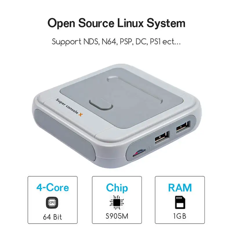 Предустановленные 50 + эмуляторов, 41000 + игр без повторов идеальная поддержка PS1/N64/DC/NDS/MAME и т. д. 4K HD HDMI выход (1080P/720P) И AV выход поддерживает подключение контроллера, Мультиплеер (1-5 игроков) сетевое соединение (Wi-Fi/LAN интерфейс) ретро мини-дизайн, лучший выбор для семьи, путешествий вечерние, консоль X для развлечений оснащена обновленным чипом S905M, Более мощный, чем RK3326, с 64-битным 4-ядерным процессором, 5-ядерный процессор поддерживает декодирование видео 4K @ 60fps и обработку HDR.