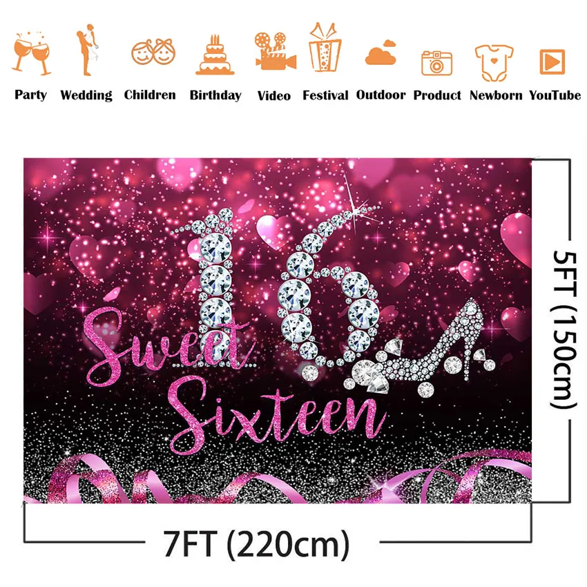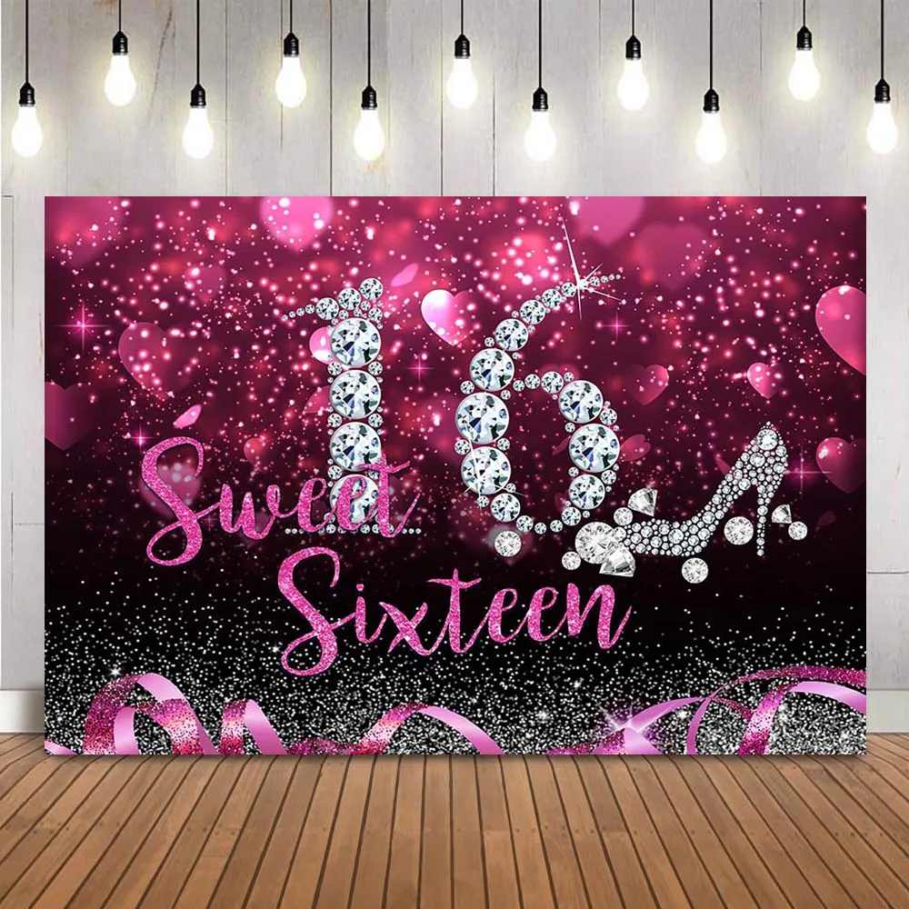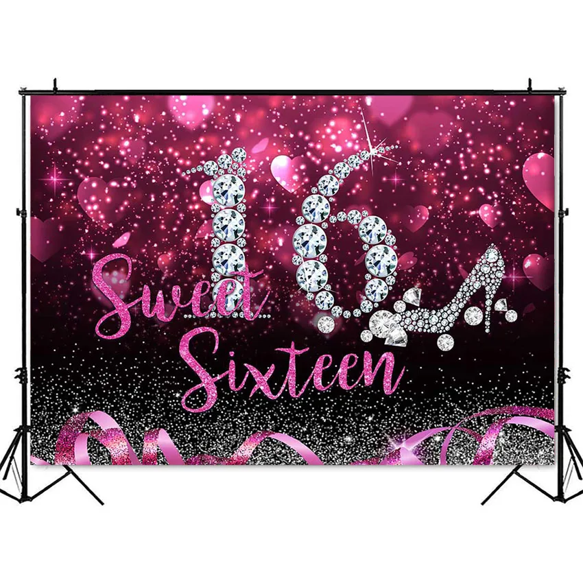 Сладкие шестнадцать день рождения фон 16th бриллиантами для девочек День Рождения украшения розовые художественные студийные тканевые фоны для фотографирования с эффектом блеск фон для фотосъемки студийный реквизит