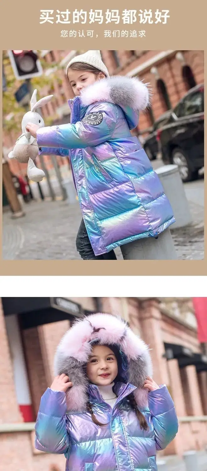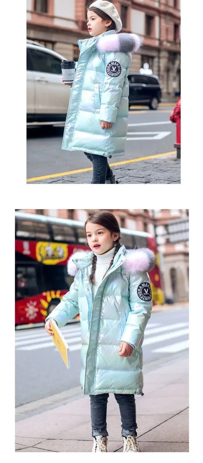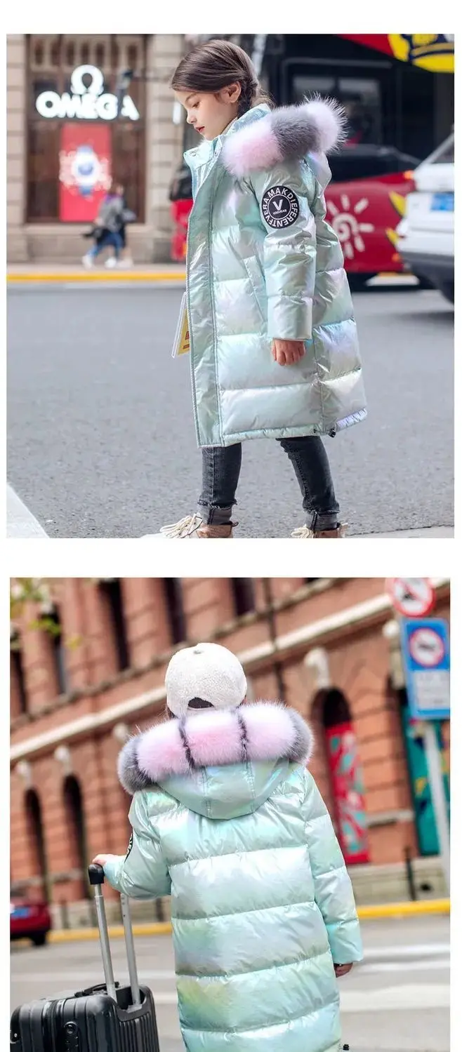 2020 зимняя блестящая куртка для девочек, теплое зимнее пальто с капюшоном для девочек, От 5 до 14 лет хлопковые парки для подростков, верхняя одежда
