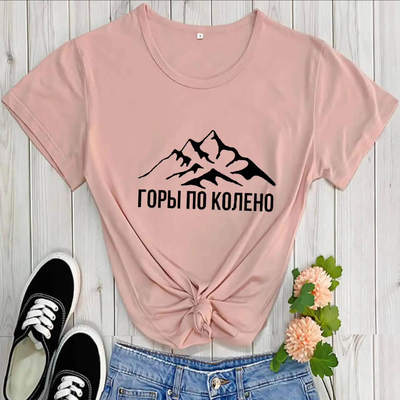 ГОРЫ ПО КОЛЕНО русская буква печать новое поступление женская прикольная летняя хлопковая футболка с коротким рукавом майка женская футболка