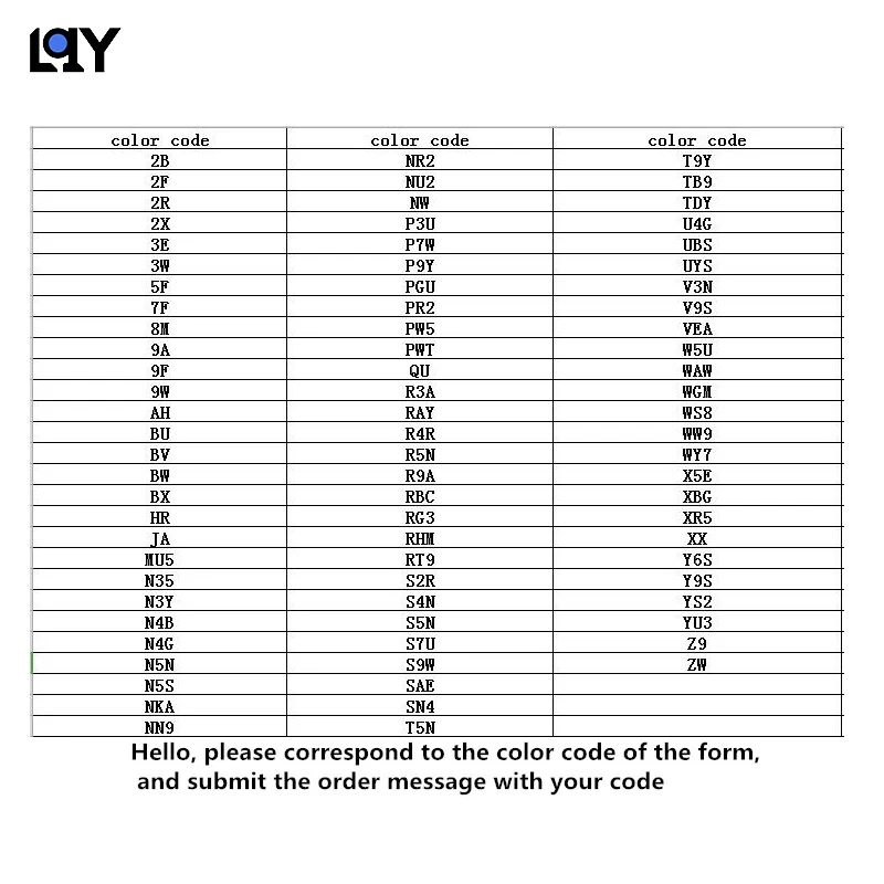 Если у вас нет нужного вам цветового кода, пожалуйста, свяжитесь с нами, чтобы узнать. Слишком много цветовых кодов. У нас нет некоторых цветов.