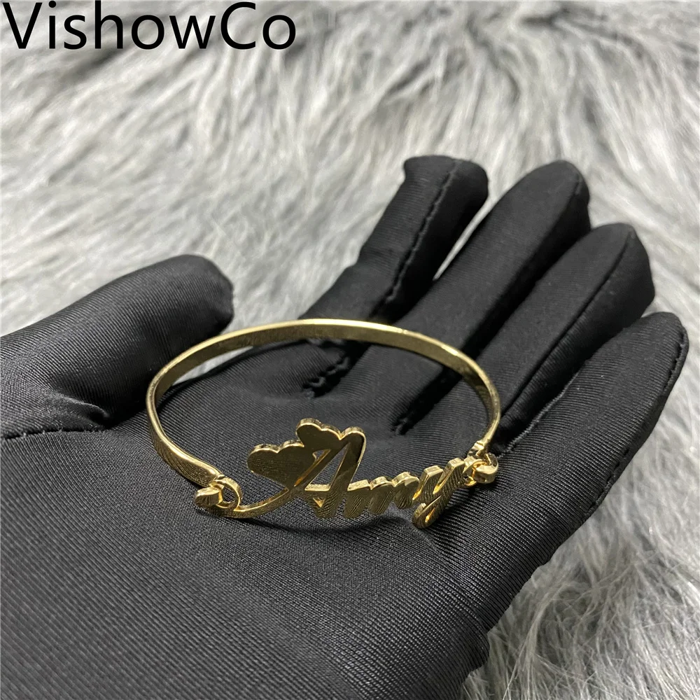 Браслет с именем на заказ VishowCo, из нержавеющей стали, под розовое золото