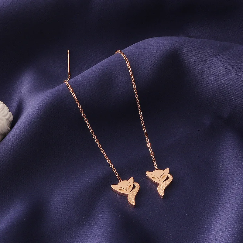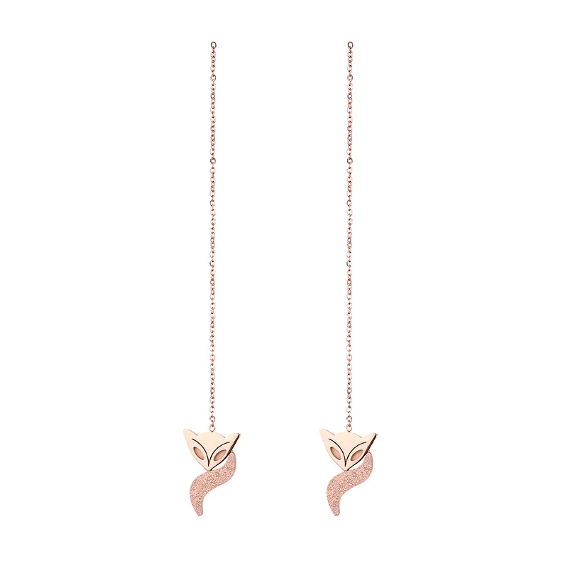 Серьги-подвески из нержавеющей стали в форме животных Женские, длинные висячие украшения из матовой лисы и кисточки цвета розовое золото вечерние вечерняя бижутерия