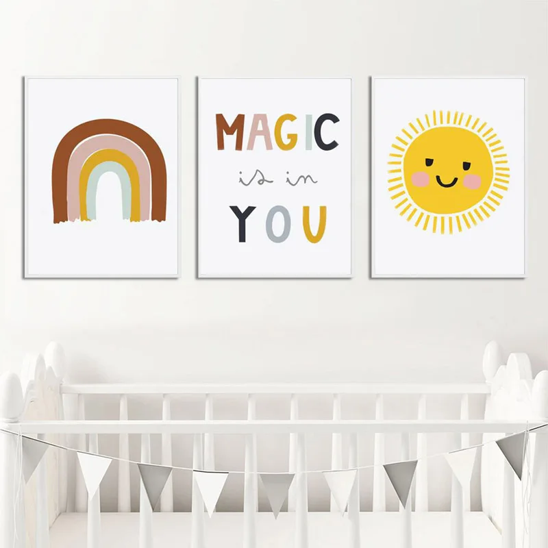 Картина для детской с изображением солнца и радуги, постер на холсте, Минималистичная картина для детской комнаты
