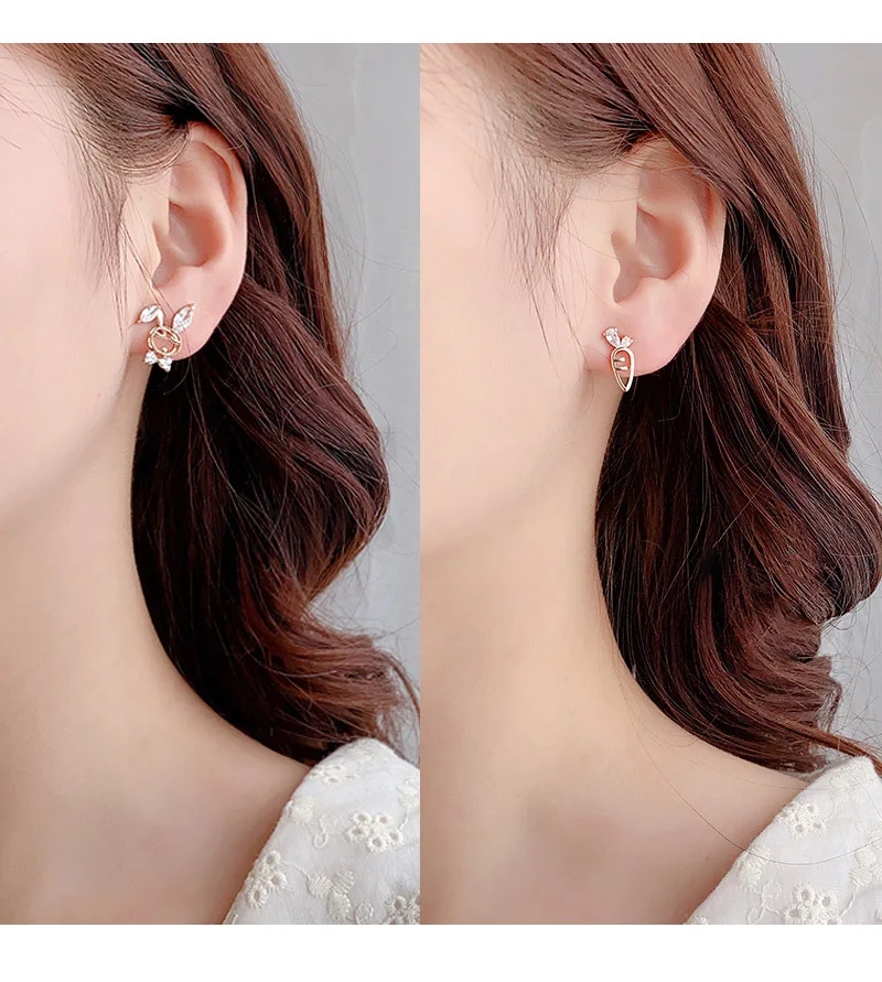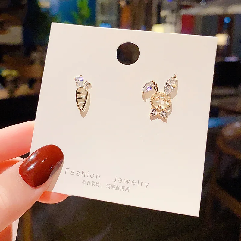 Женские серьги-гвоздики Zeojrlly, маленькие асимметричные серьги в виде кролика, ювелирные украшения в Корейском стиле