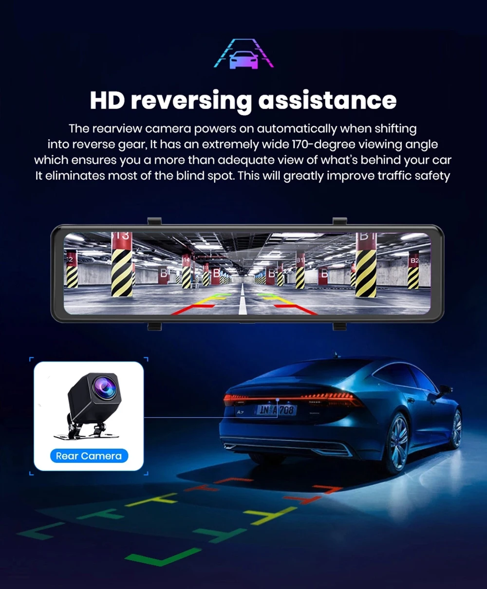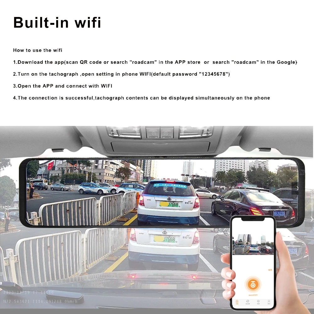 Зеркало-видеорегистратор, 12 дюймов, 2160P, 4K, Wi-Fi, GPS