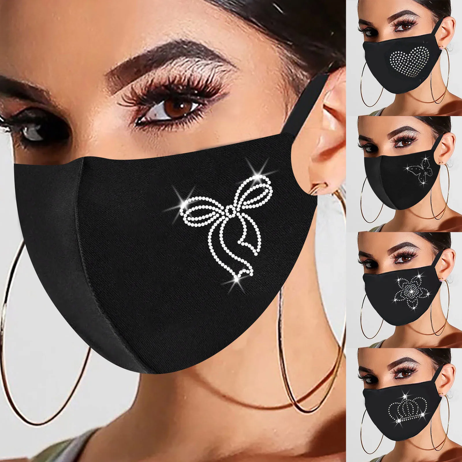 5 шт. модная Женская Популярная маска с алмазным принтом Рождественская маска для лица черные хлопковые Тканевые Маски для защиты от вирусов маски