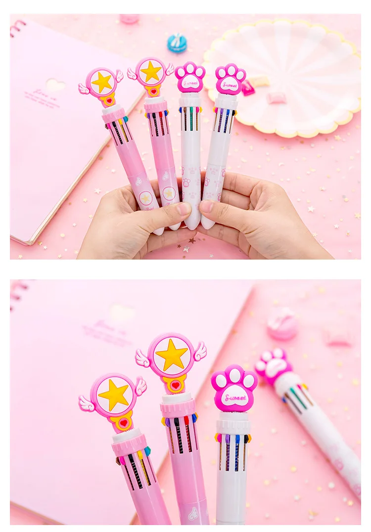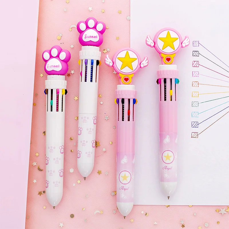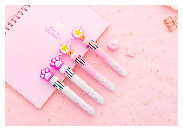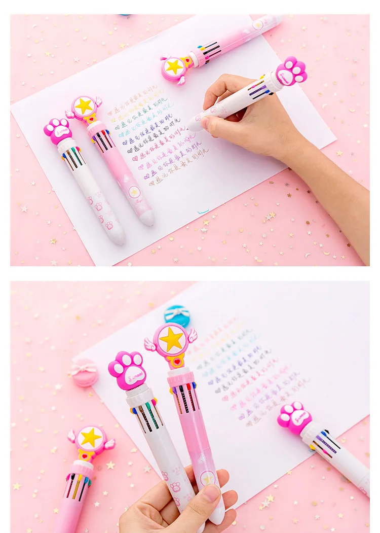 Кавайная шариковая ручка в виде кошачьей лапы, звезды 10, цвета, Шариковая, милый Единорог, фламинго, шариковые ручки для письма, канцелярские принадлежности, школьные принадлежности