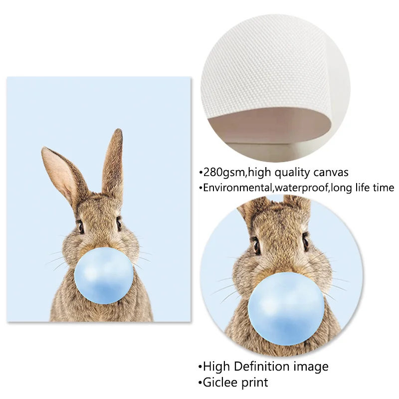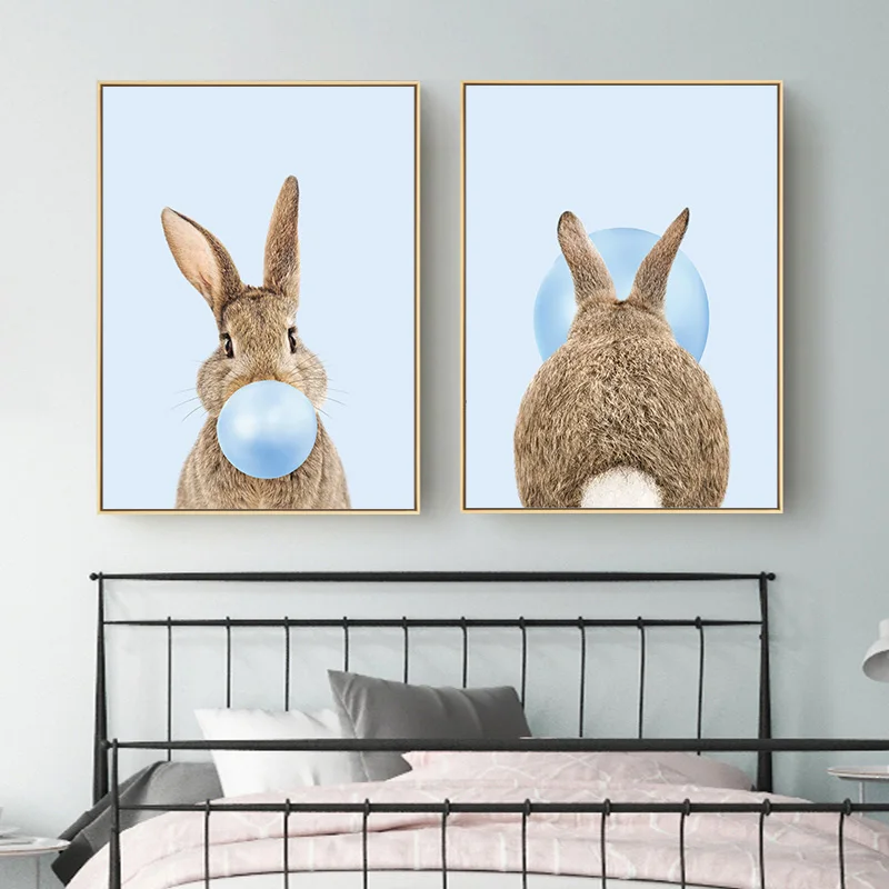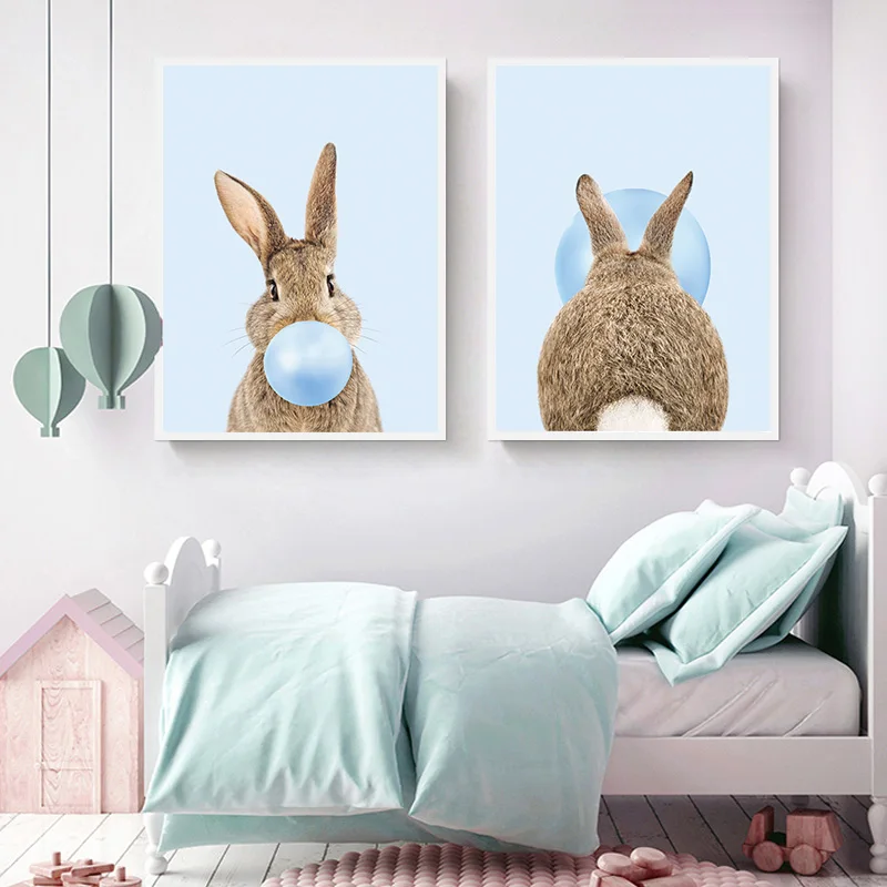Плакаты с изображением кролика и зайца в виде голубого пузыря, настенная живопись, живопись на холсте, детская картина, скандинавский декор для детской комнаты