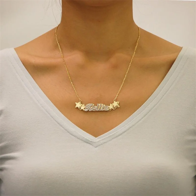 VishowCo циркониевое ожерелье с именем под заказ двойная позолоченн...
