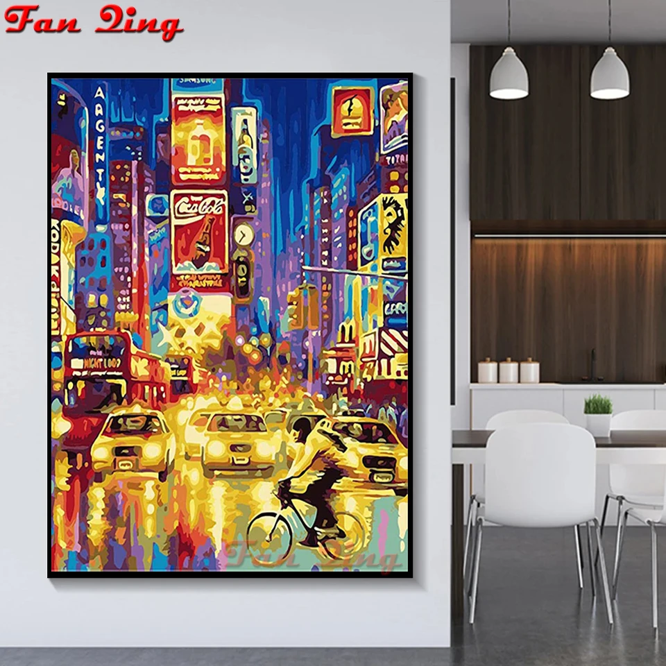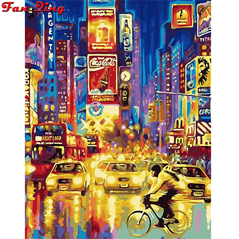 Таймс Сквер, Нью-Йорк 5D DIY Алмазная картина город ночной вид полный квадрат/круглые стразы вышивка крестиком Мозаика