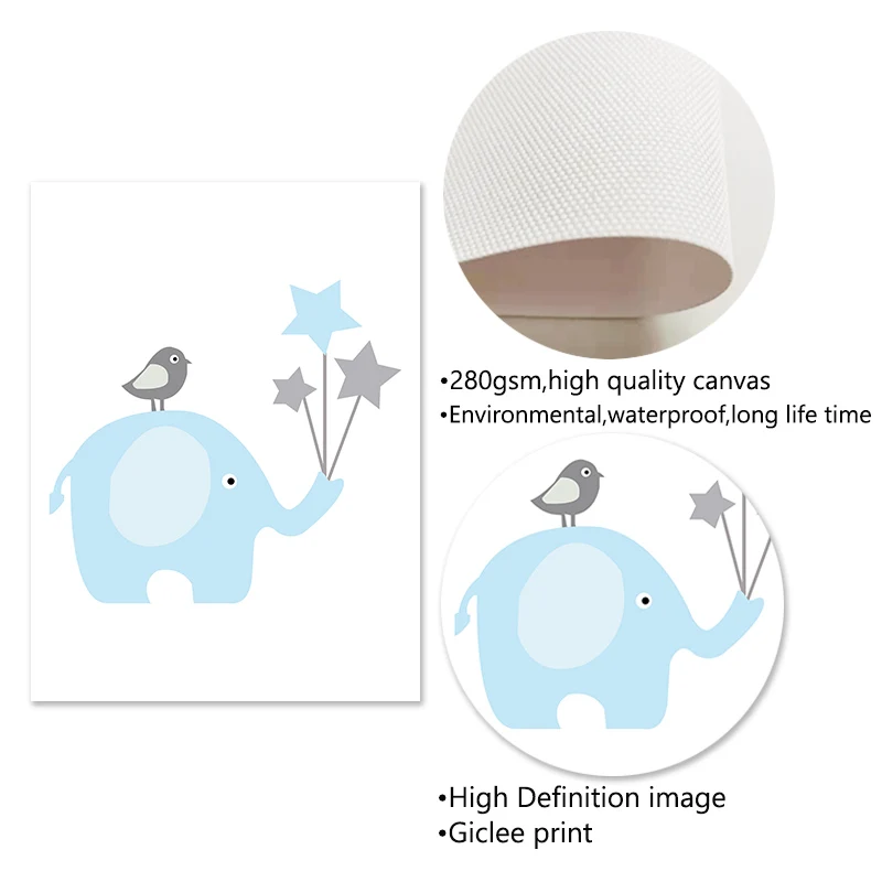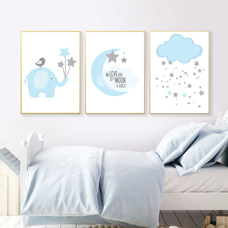 Голубой Симпатичный слон, звезда, холст, плакаты, принты, детская к...