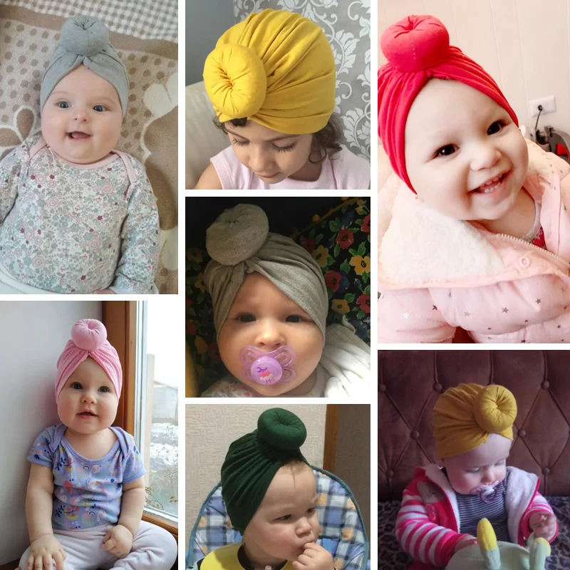 Шапка-пончик однотонная для маленьких девочек, тюрбан с капюшоном д...