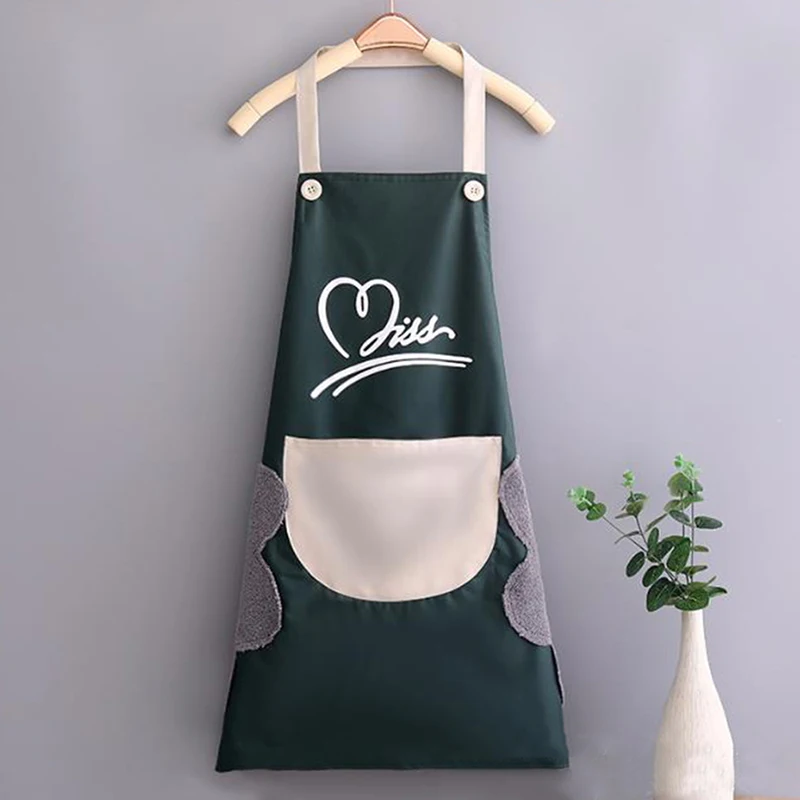 Кухонный Фартук для дома, водонепроницаемый кухонный нагрудник из полиэстера, с функцией ручного протирания, в форме сердца, для взрослых, аксессуар для кухни