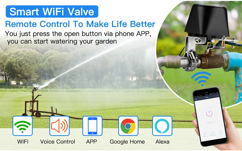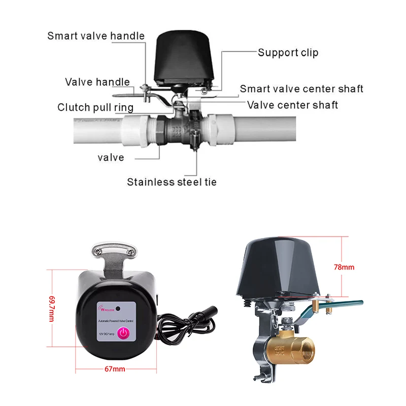 Датчик утечки воды на батарейках характеристики:-100% без проволоки, легко установить-Соединение с водяным клапаном Tuya-Подключение Wi-Fi 2,4G, не требуется концентратор-Когда датчик обнаруживает утечку воды, он издаст сигнал тревоги, и приложение будет нажимать уведомления-2 * батарейки AA (не входят в комплект), с функцией оповещения о низком заряде батареи-Скачать бесплатное приложение «TuyaSmart» или «Smart Life» на iOS и Android -2 аккумулятора AA (не входят в комплект)-Не перезаряжаемая батарея-Время работы: 1 год (на основании 10 событий в день)Tuya умный WiFi клапан Характеристики: -APP пульт дистанционного управления клапан закрыть/открыть в любом месте-WiFi водяной клапан Напряжение питания: DC12V 1A-Поддержка подключения Wi-Fi 2,4G-Диапазон беспроводного газового радио Vlave: 30 метров-Умное давление клапана: 1,6 МП-Умный газовый клапан wifi крутящий момент: 30-60 кг. С-Контроль времени: вы можете установить контроль времени, водяной клапан включается или выключается в приложении-Работает с Alexa/Google Home-Приложение: приложение iOS/Android "Smart Life" или "TuyaSmart"-Регулируемая установка клапана Макс. 1/2 дюйма размер трубы Сценарий/Применение: -Установите варианты в приложении, например, когда датчик воды Обнаруживает утечку воды, используйте Умный клапан для выключения воды.-Дома, кухни и т. Д. Размер продукта: -70*70*80 мм Название приложения: -"TuyaSmart" или "Smart Life" на Google Home или iOS APP Store Аксессуары для посылка: -Умный клапан-Сумка с винтами-Руководство пользователя-Адаптер питания