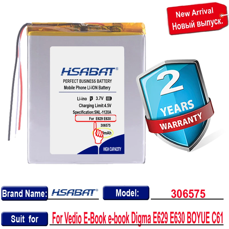 Описание: 1. Литий-ионный аккумулятор 2. Напряжение: 3,7 V 3. Емкость:2000 мАч 4. Используйте для электронной книги Vedio Digma E629 E630 BOYUE C61 battery gmini t6lhd lite 306575
