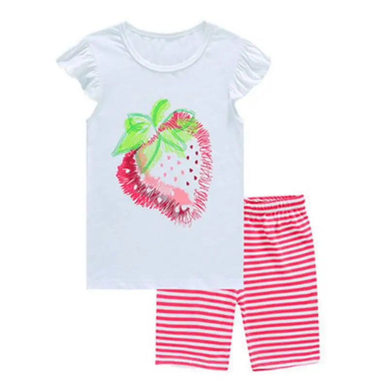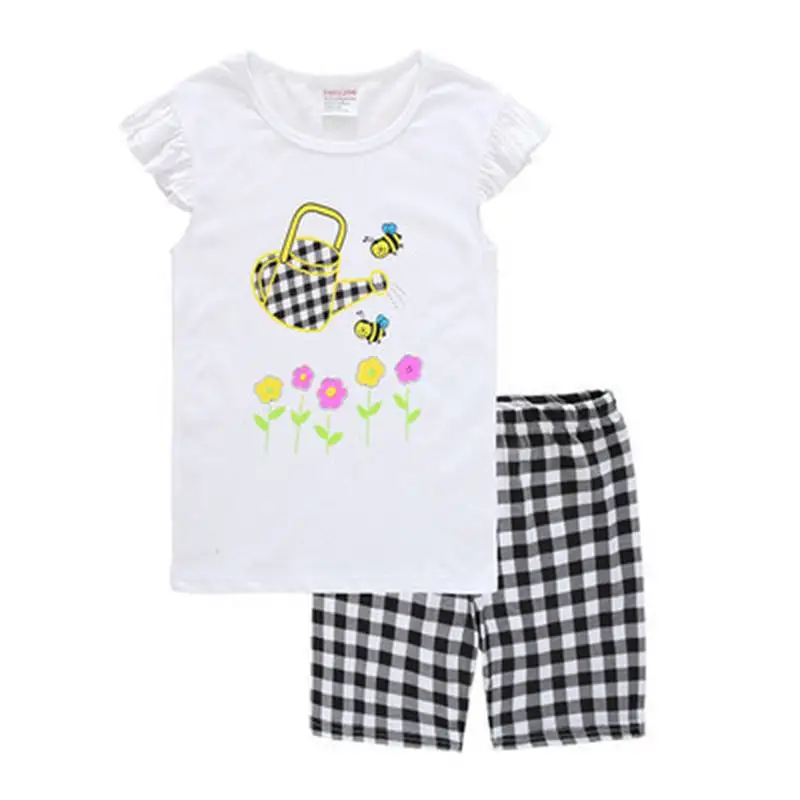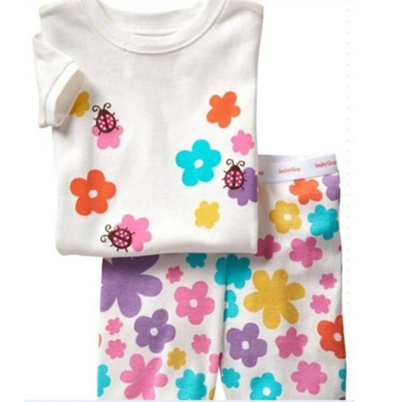Пижамный комплект для девочек, хлопковая футболка с коротким рукаво...