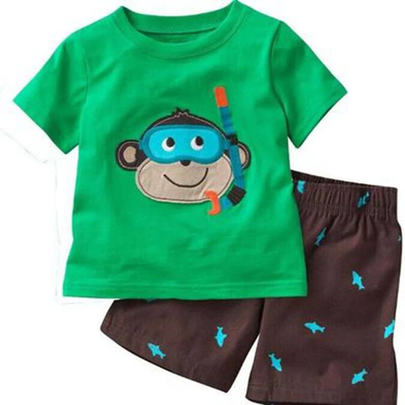 Новинка, комплекты одежды для дайвинга с изображением обезьяны, Пижама для маленьких мальчиков, 100% хлопок, Детская домашняя одежда, От 2 до 7 лет Детские футболки и шорты